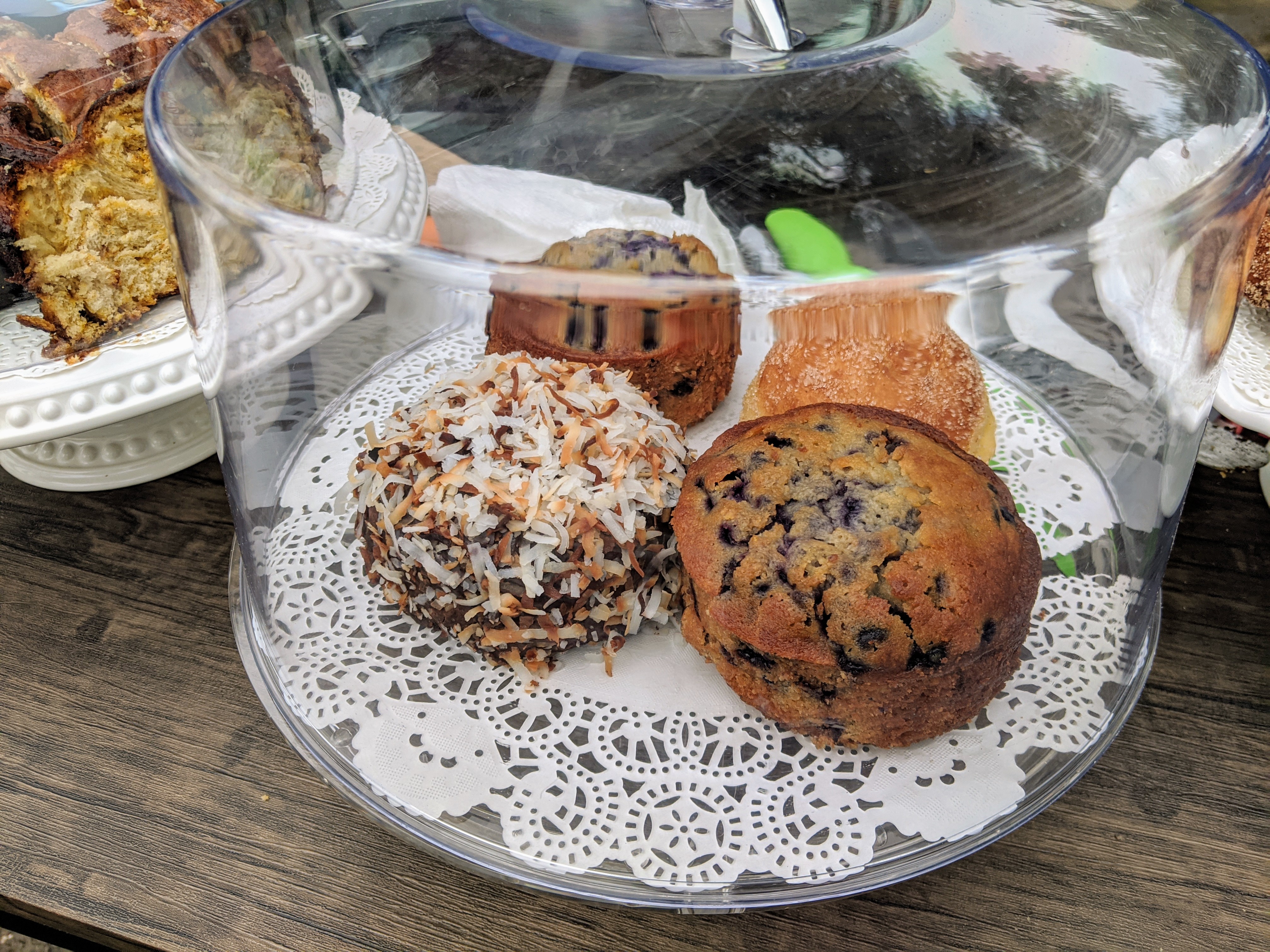 This last pop up, I had 3 types of babka: Nutella, butter spice, and PB & J (blueberries). I also had a gluten free almond and pear tart, and those blueberry olive oil muffins made a comeback.