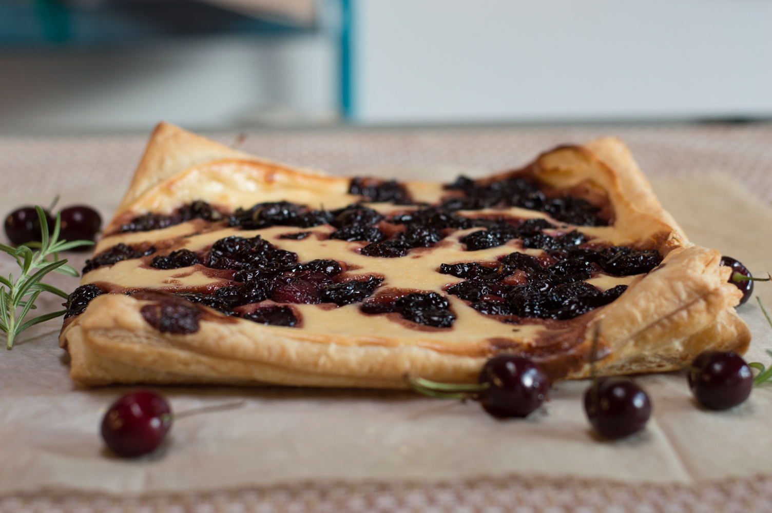 - Heat skillet on stove on medium heat. Add butter and let it melt. Add rosemary, cook for 30 seconds - minute, then add cherries. Sprinkle cherries with a tbsp of sugar and cook for 2-3 minutes, stirring occasionally to prevent burning.