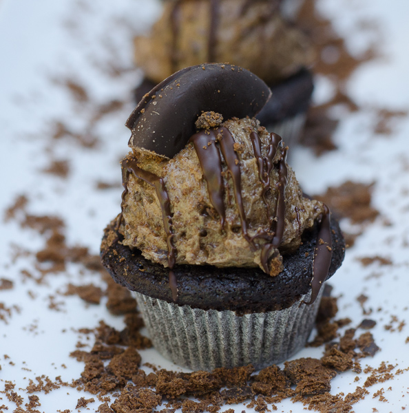 Anywho, these use my favorite go to chocolate cake recipe: oil instead of butter to provide more moisture, and real melted dark chocolate as well as brewed coffee to bring out the chocolate flavor.