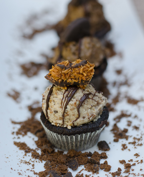 I must admit, I’m not usually a fan of desserts composed of other desserts. But, girl scout cookie season came around, and I had the urge to crush them, mix them with frosting, and put them on a cupcake! That’s a normal urge right??